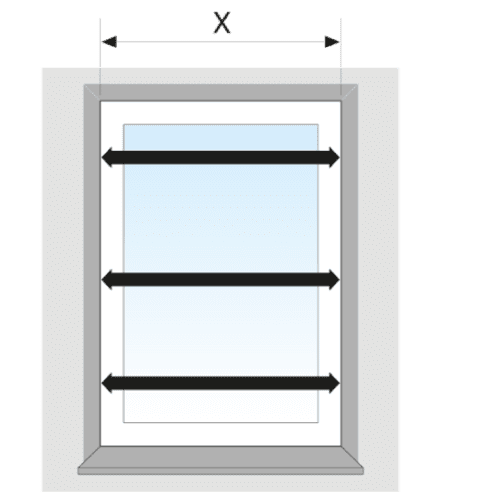 - Hanteer bij montage van geleiders tussen de muur of op het kozijn 5mm speling aan, trek dus 5mm van de kleinste gemeten afmeting af