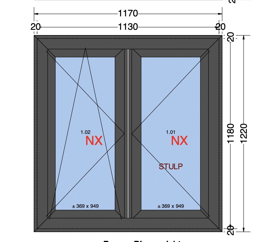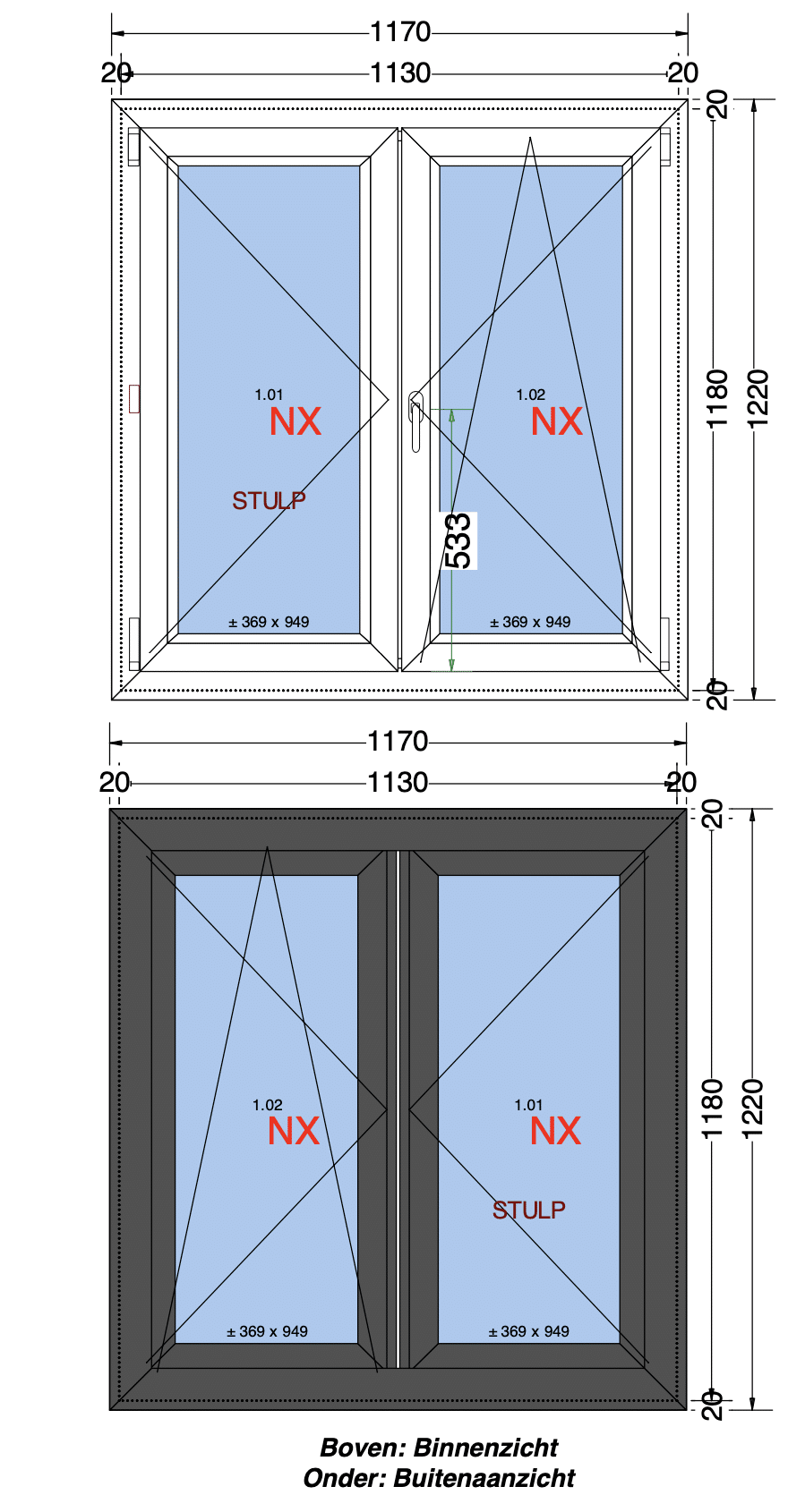 Buitenmaat: 1130mm breed x 1180mm hoog